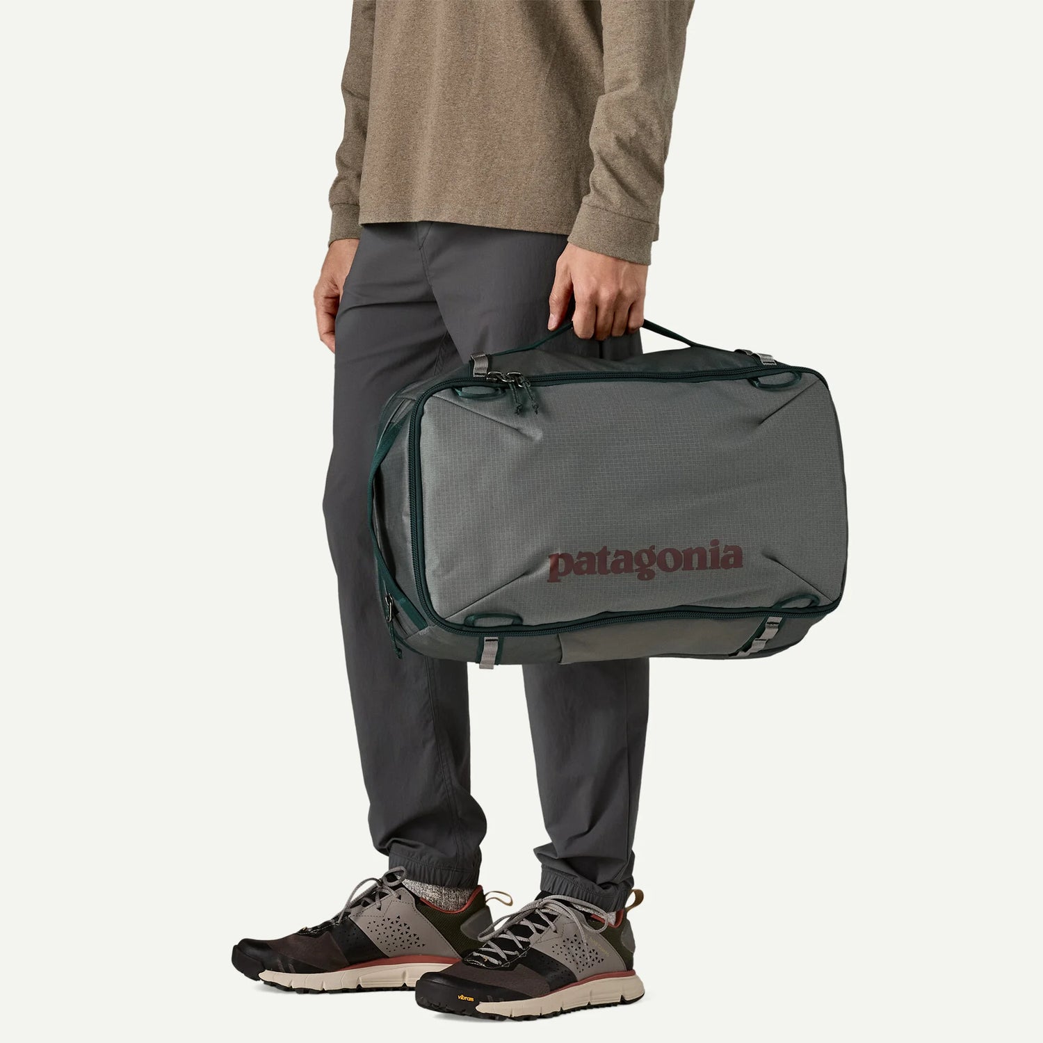 Padded, stowable hip belt doubles as the shoulder strap; change the carrying style by pulling the hip belt out of the pass-through panel and attaching it to the buckles near the long end grab-handle