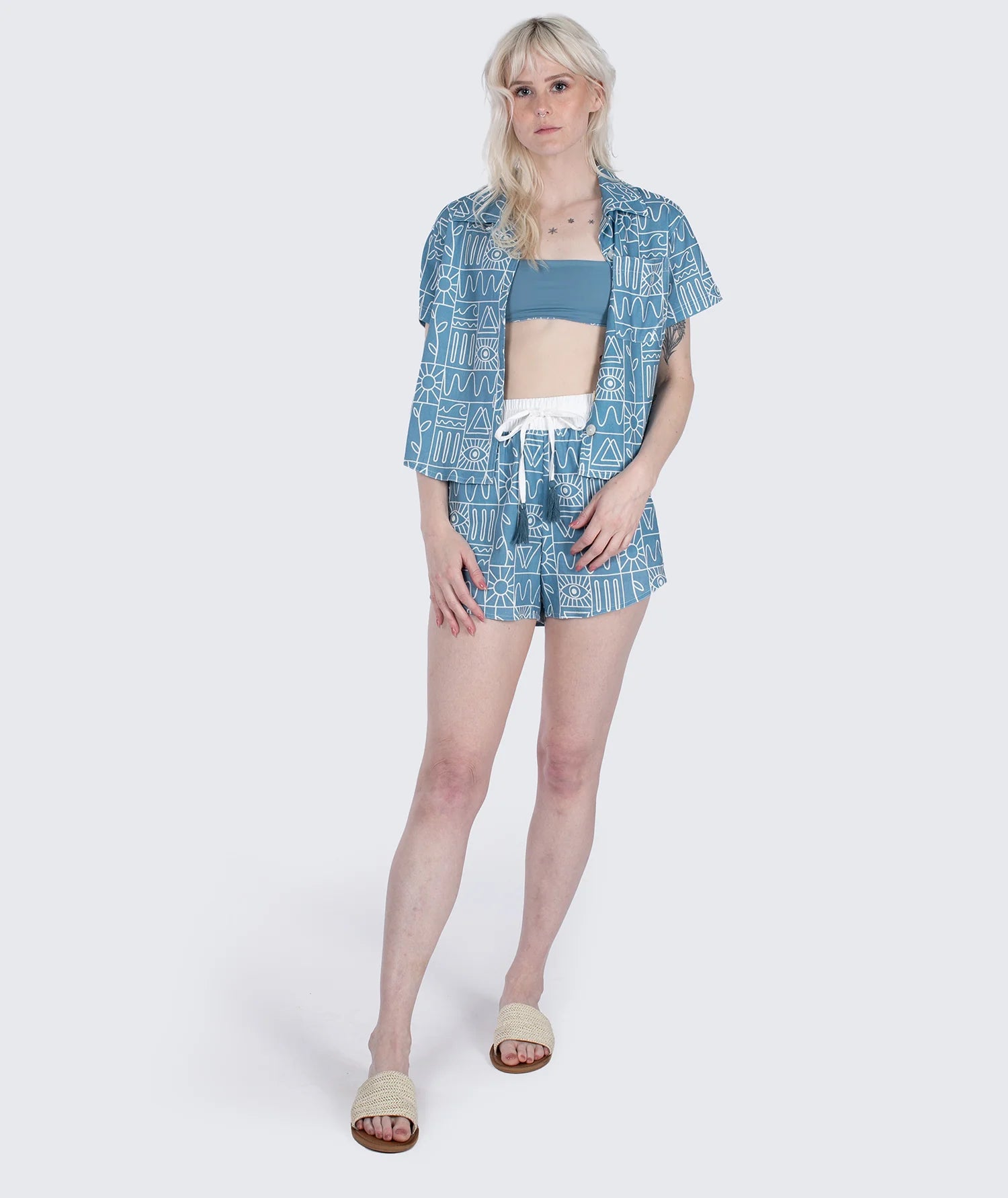 The Dune Short is a Jetty women's staple. A simple, two pocket, Linen, Viscose blend short with a tassel drawstring and elastic waist, this short is easy to throw on as you head to sunrise on the beach, casual enough to walk around town, and light enough to keep on all day.