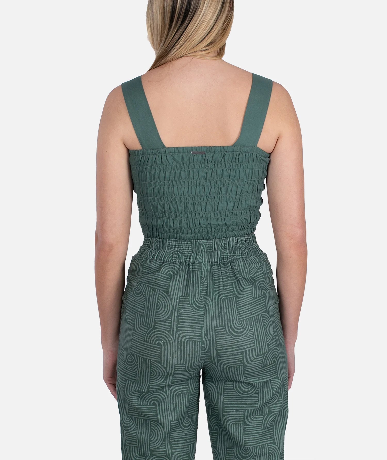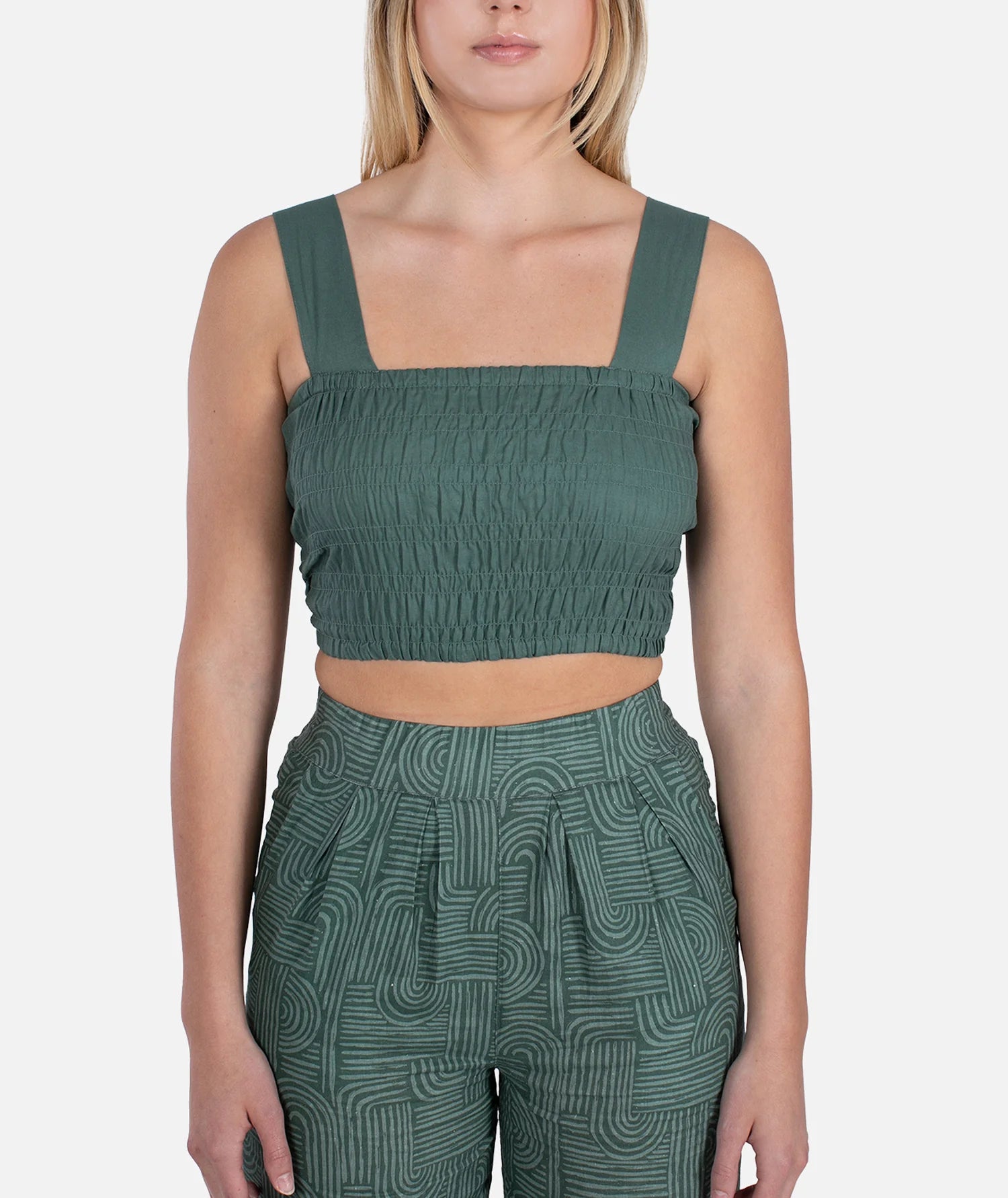 Cropped with a square neckline and smocked bodice, the Meri Top is a great addition to your tank rotation. This tank is made from an eco-friendly linen and viscose blend to keep you cool and mother nature happy. With wide bra-friendly straps, it's an instant summer favorite. Complete the set with the Montauk Pant.