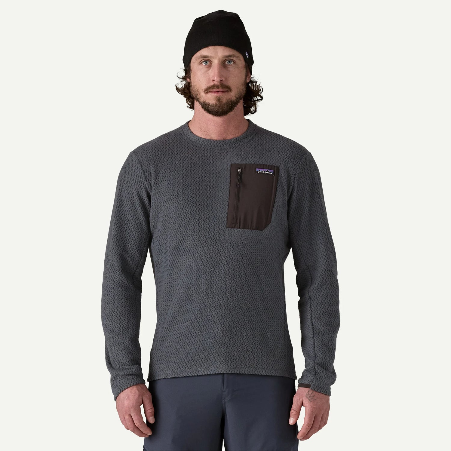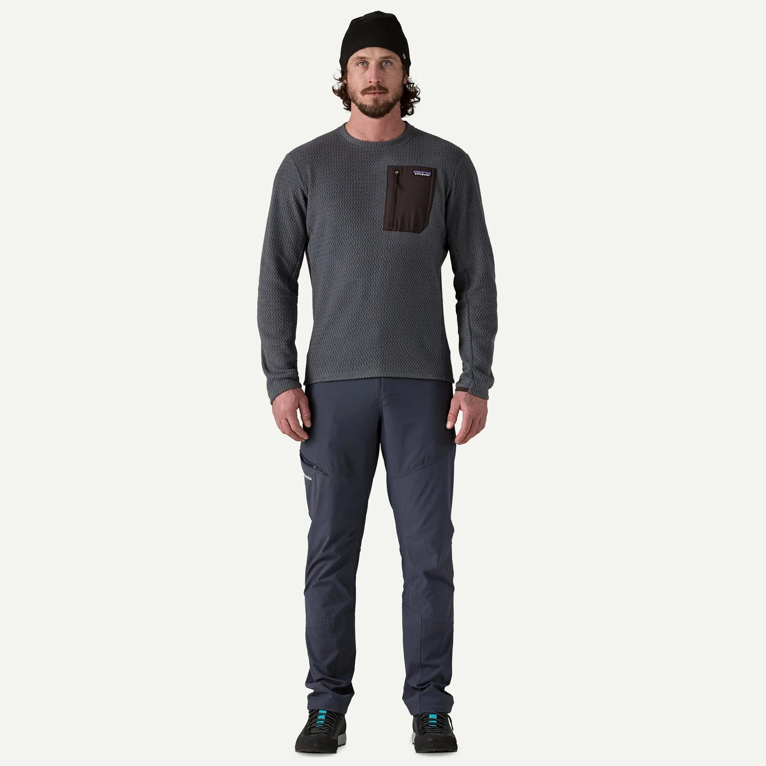 Body fabric is made from 100% recycled polyester jacquard fleece with hollow-core yarns and wicks moisture, dries fast and is highly breathable for cool-weather activities