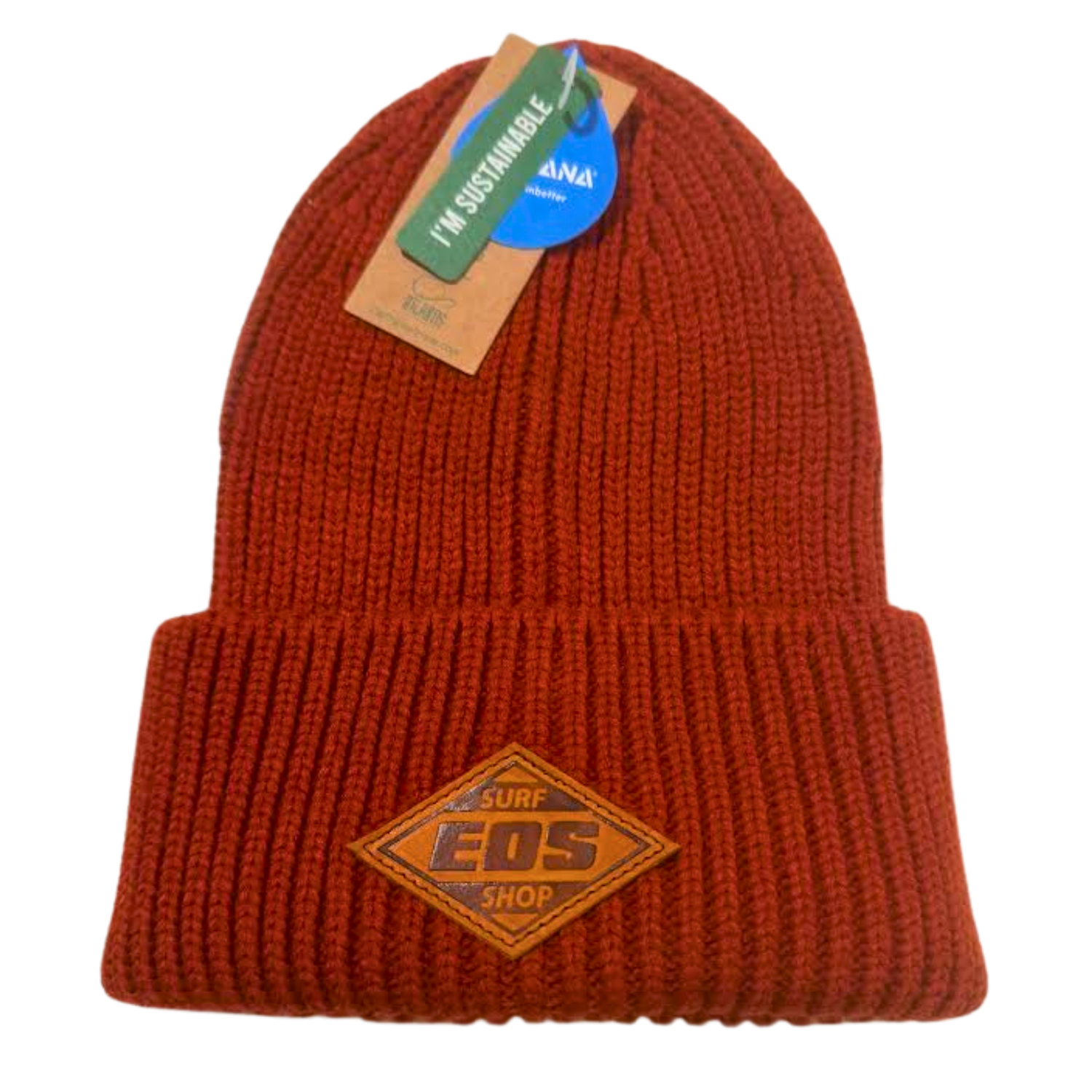 EOS Leather Patch Beanie - Large Ribbed Burnt Orange is backordered and will ship as soon as it is back in stock.
