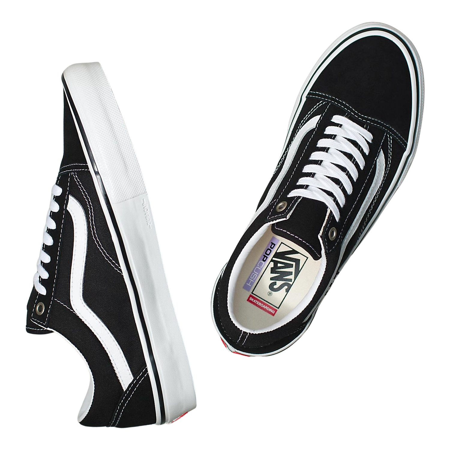 Vans The Old Skool Pro, a Vans classic upgraded for enhanced performance, features suede, canvas, and leather uppers, single-wrap foxing tape, UltraCush HD sockliners to keep the foot close to the board while providing the highest level of impact cushioning, and Vans original waffle outsoles for superior grip and control. The Old Skool Pro also includes Duracap reinforcement rubber underlays in high wear areas for unrivaled durability.