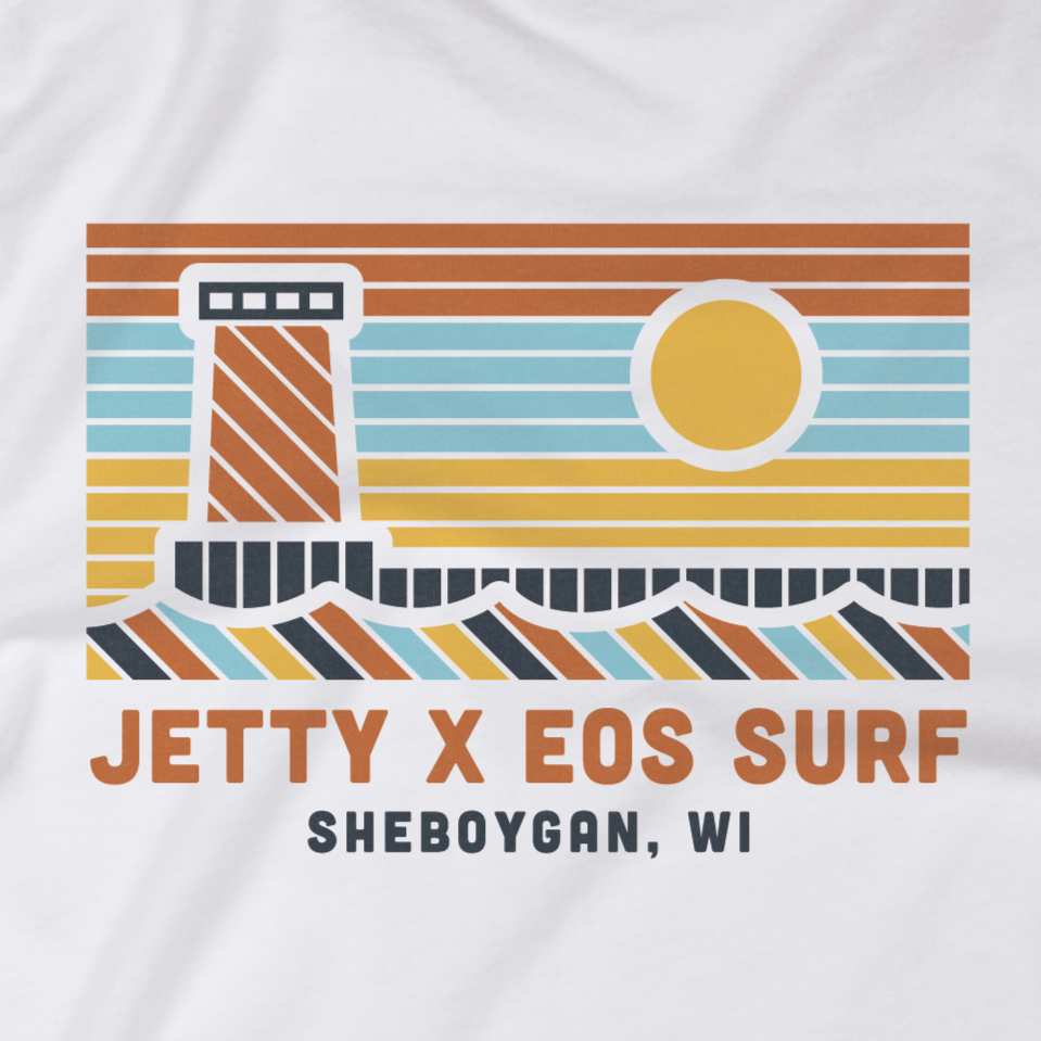 Get ready to ride the waves in style with the EOS X Jetty Collab Tee! This epic collaboration between EOS surf shop and Jetty brings you the best of both worlds - the cool vibes of Sheboygan Wisconsin and the rad surf culture of Jetty.