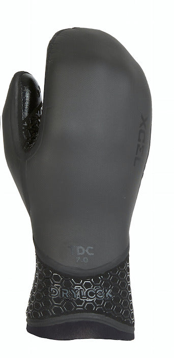 Our most advanced surf glove, the Drylock features revolutionary TDC Thermo Dry Celliant, our warmest inner lining ever. TDC features mineral-enhanced smart fibers that recycle body heat into infrared energy for greater warmth, increased endurance, faster recovery, and enhanced overall performance. The exclusive, seamless, tapered Drylock wrist seals form the ideal fit with your wetsuit and help prevent flushing. Full "Gripper" palms ensure great traction and grip; the Texture Skin outer back hands provide excellent wind resistance. 100% UltraStretch neoprene, with glued & blindstitched seams sealed with outer Taitex for maximum warmth.