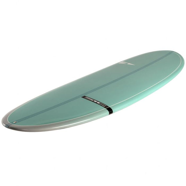 The subtle concave in the nose promotes earlier planing. This generous nose shape carries down to the mid-section of the board, and the flatter bottom in the mid-section provides stability in the standing area and generates more speed, whether you are on mushier waves or closeout sets. The rounded pin and makes the board loose, maneuverable, and very manageable on any size wave.