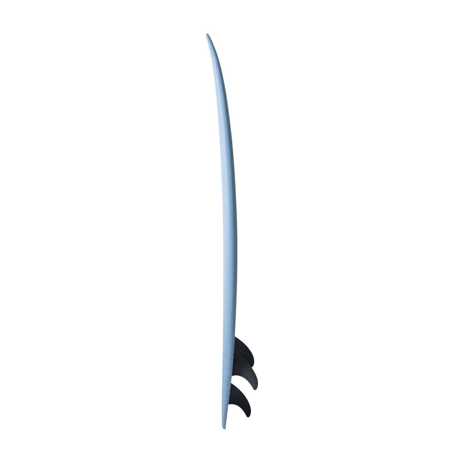 • The slight hip behind the front fins reduces the area under the back foot creating a pivot point for snappy turns. Boxy and full rails also add to the overall volume and forgiving nature of this model