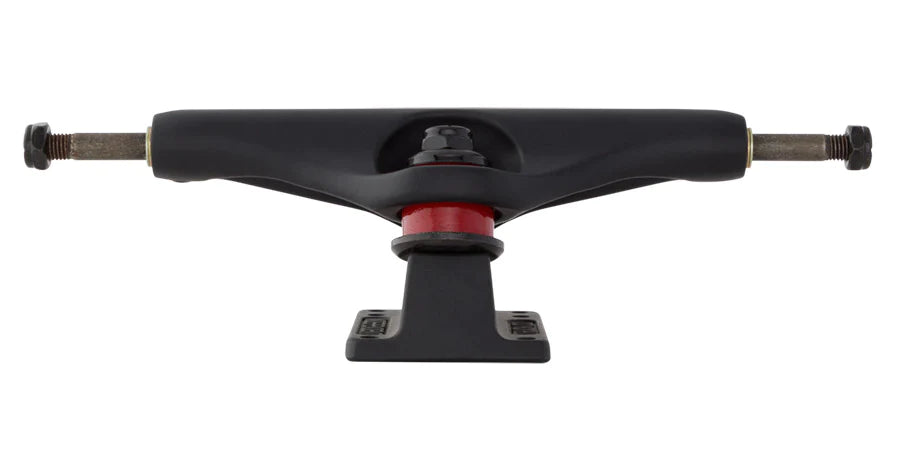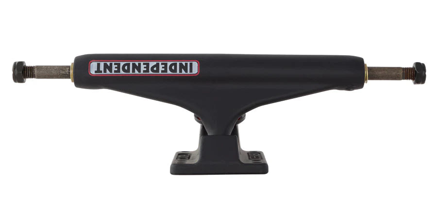 Independent Trucks Bar trucks feature flat black hanger and baseplate with 2 color bar pad print, red cushions and pivot cup, and black and red hardware.Durable all purpose truck for any type of skateboarding.